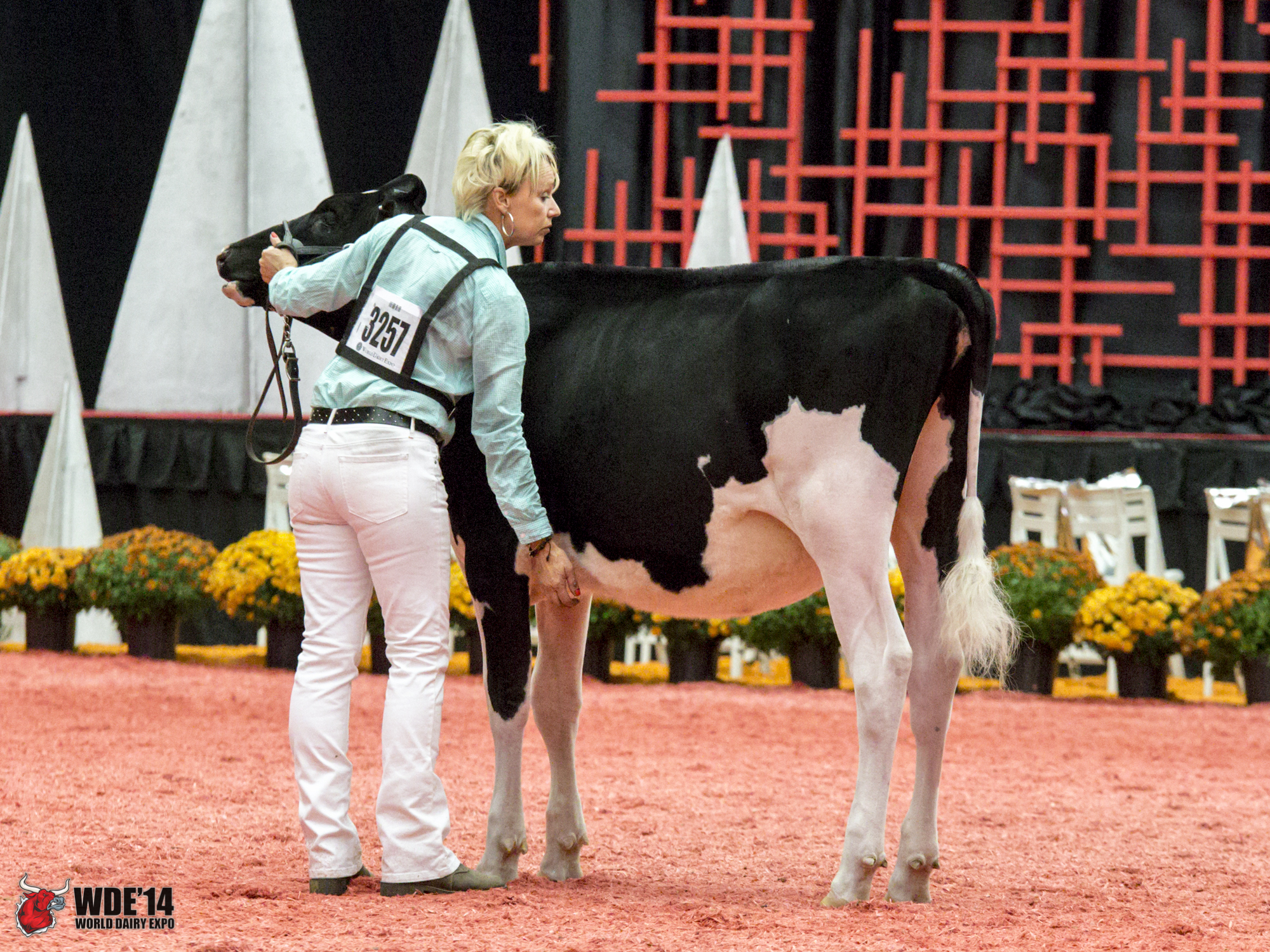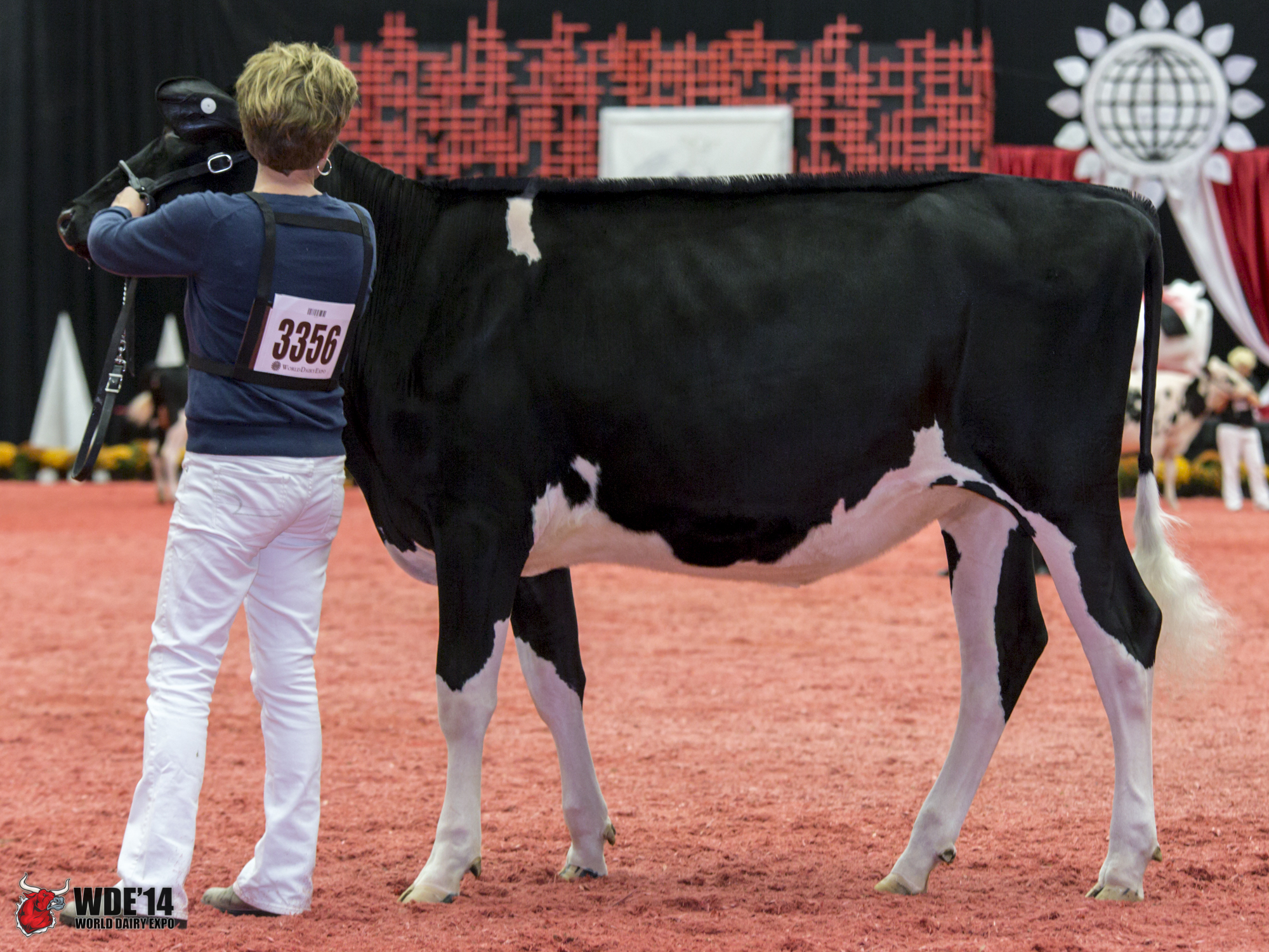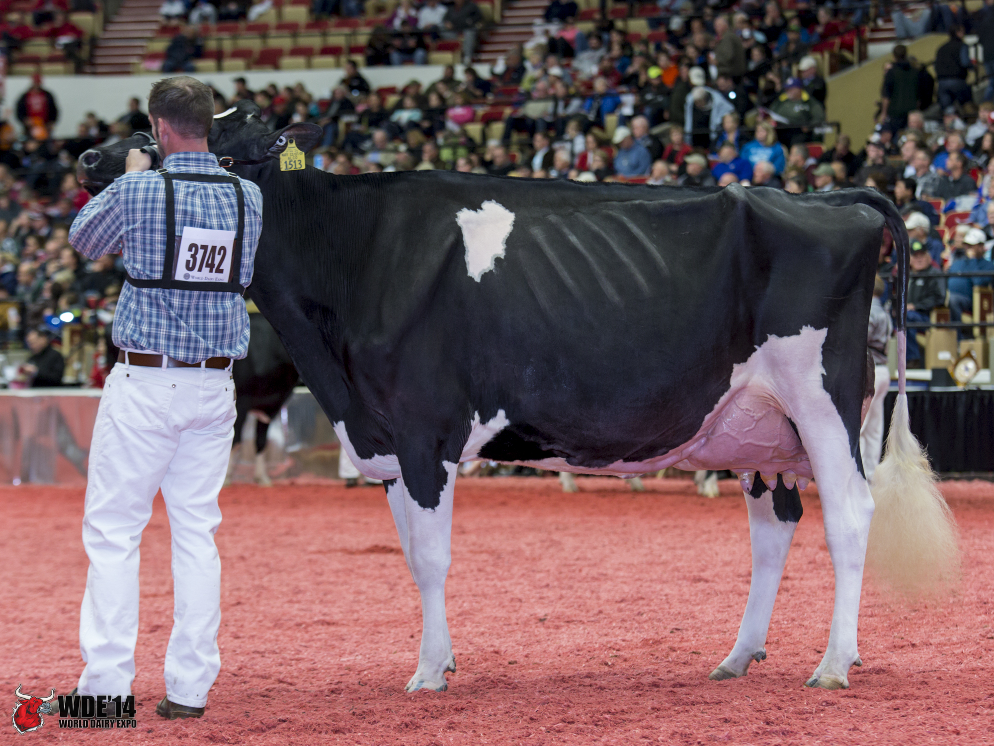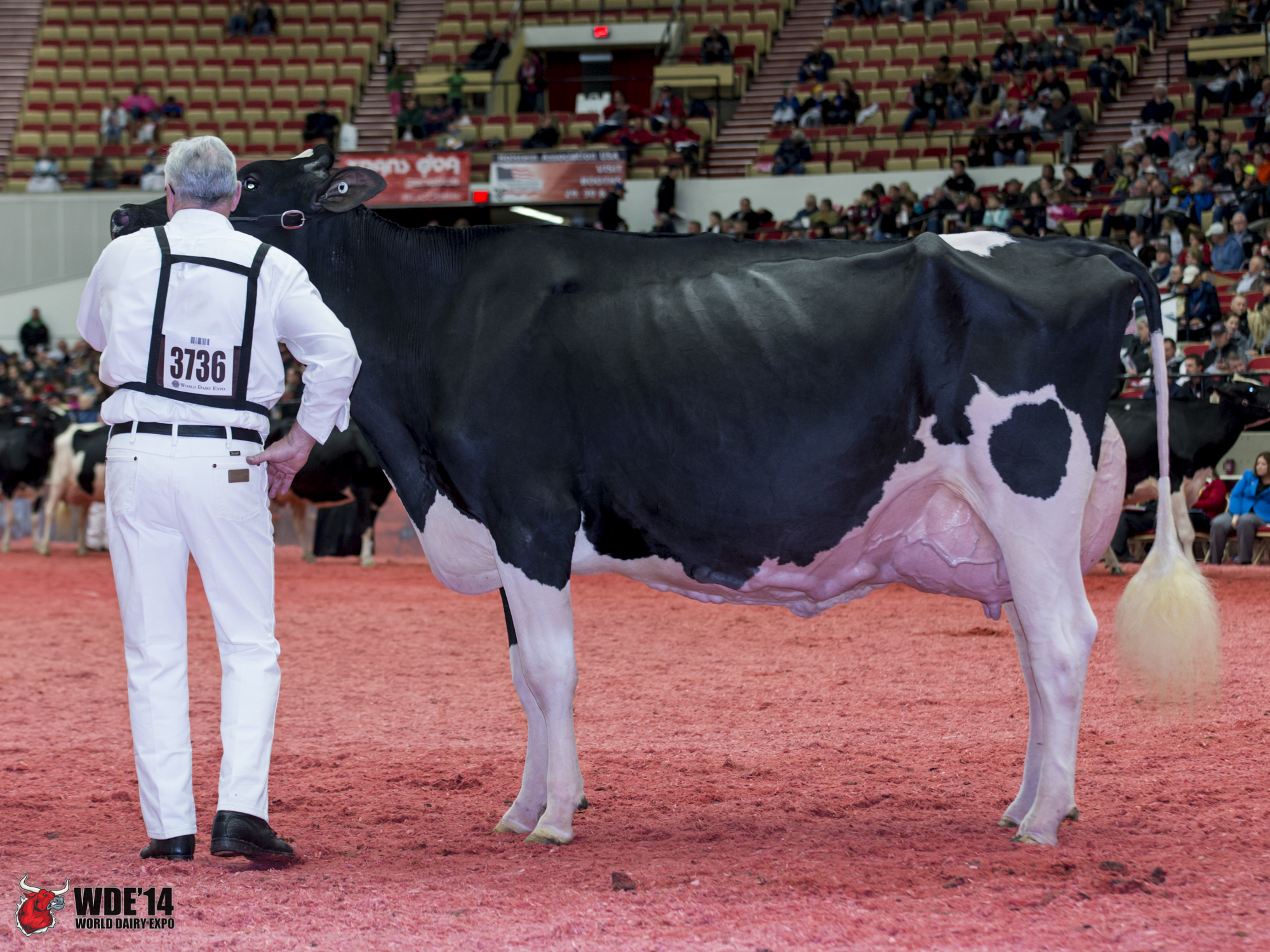 Junior Champion – Comestar Larion Goldwyn (Goldwyn), Jeffery Jet Butler & Lightening Ridge Holsteins, IL Reserve Junior Champion – Ashview-TG Atwood Lilly-ET (Atwood), Ted, Molly, & Tom Norling & Tony Galgowski, WI HM Junior Champion – Savage-Leigh Alex Lacey ET (Alexander), Miranda E Iager, MD