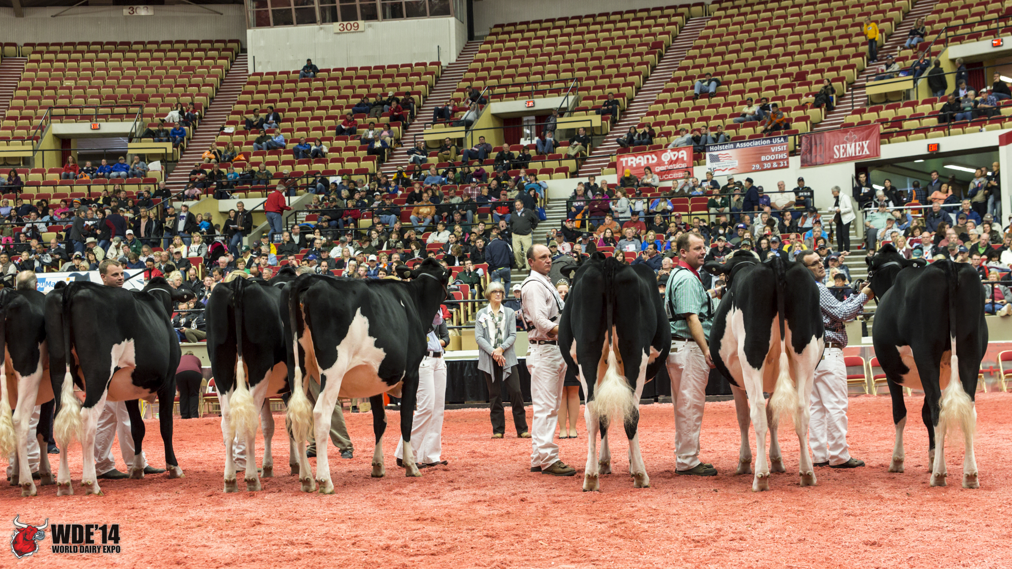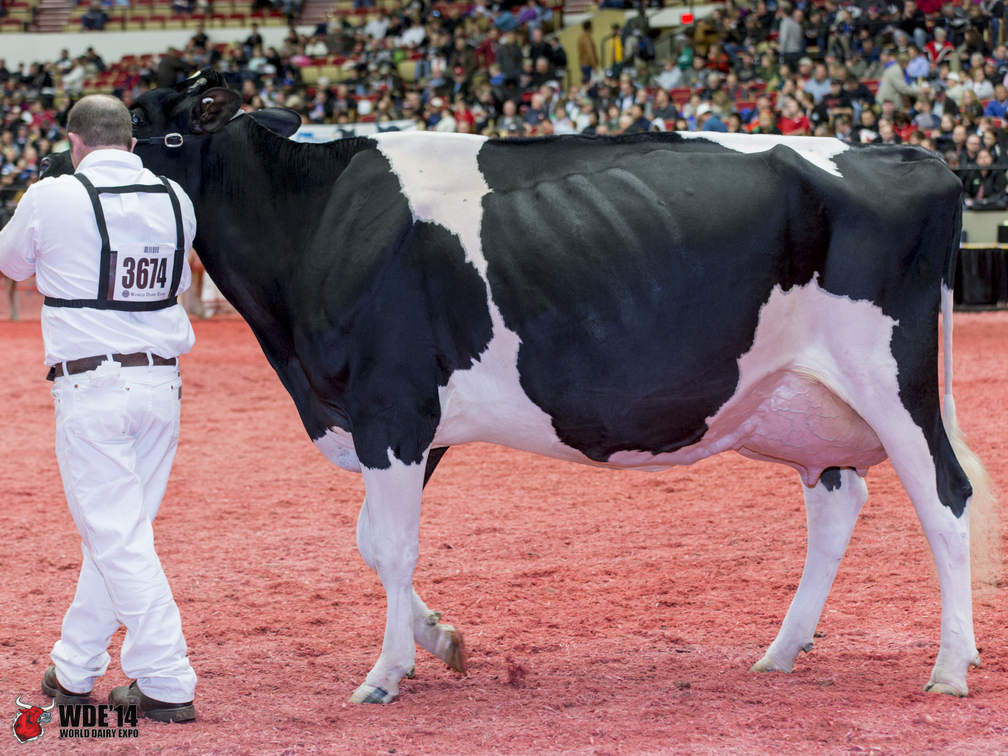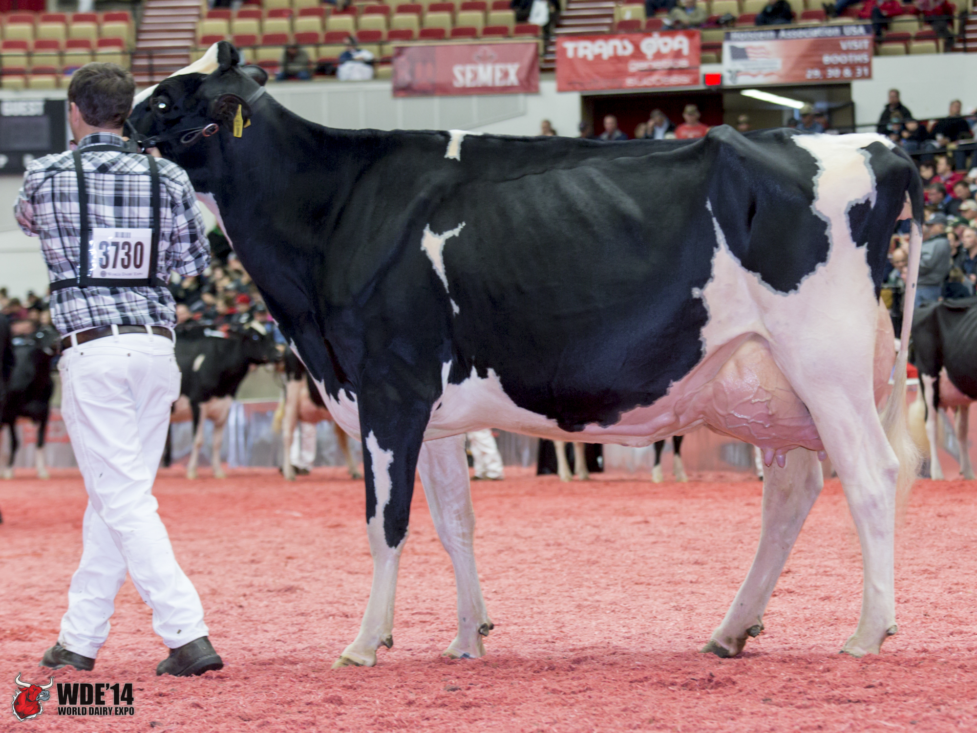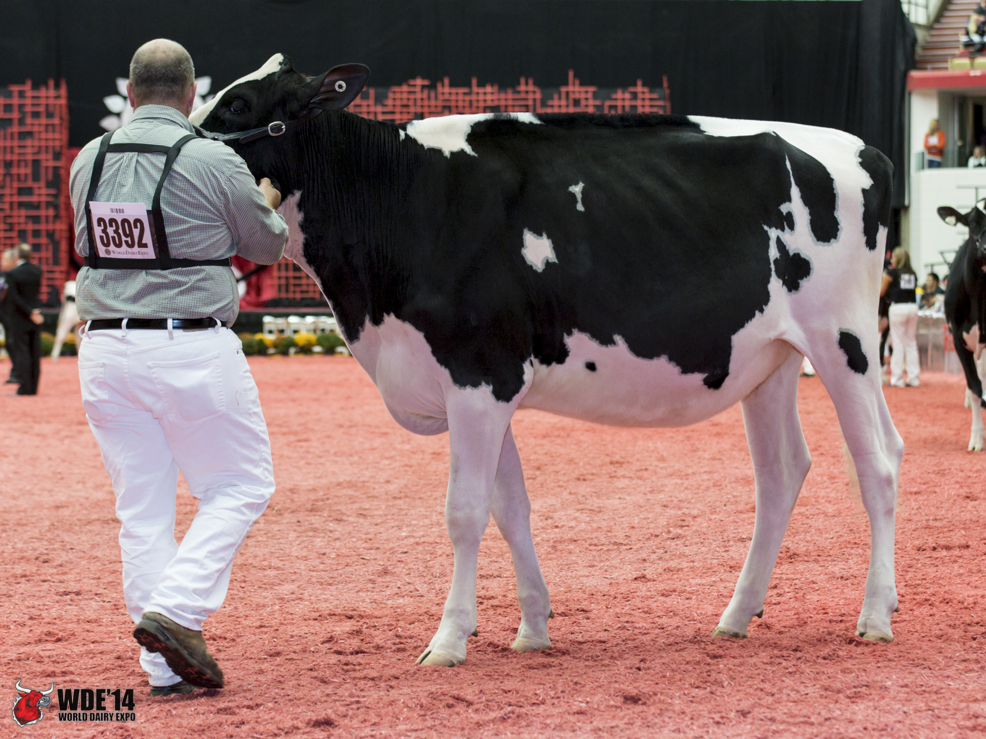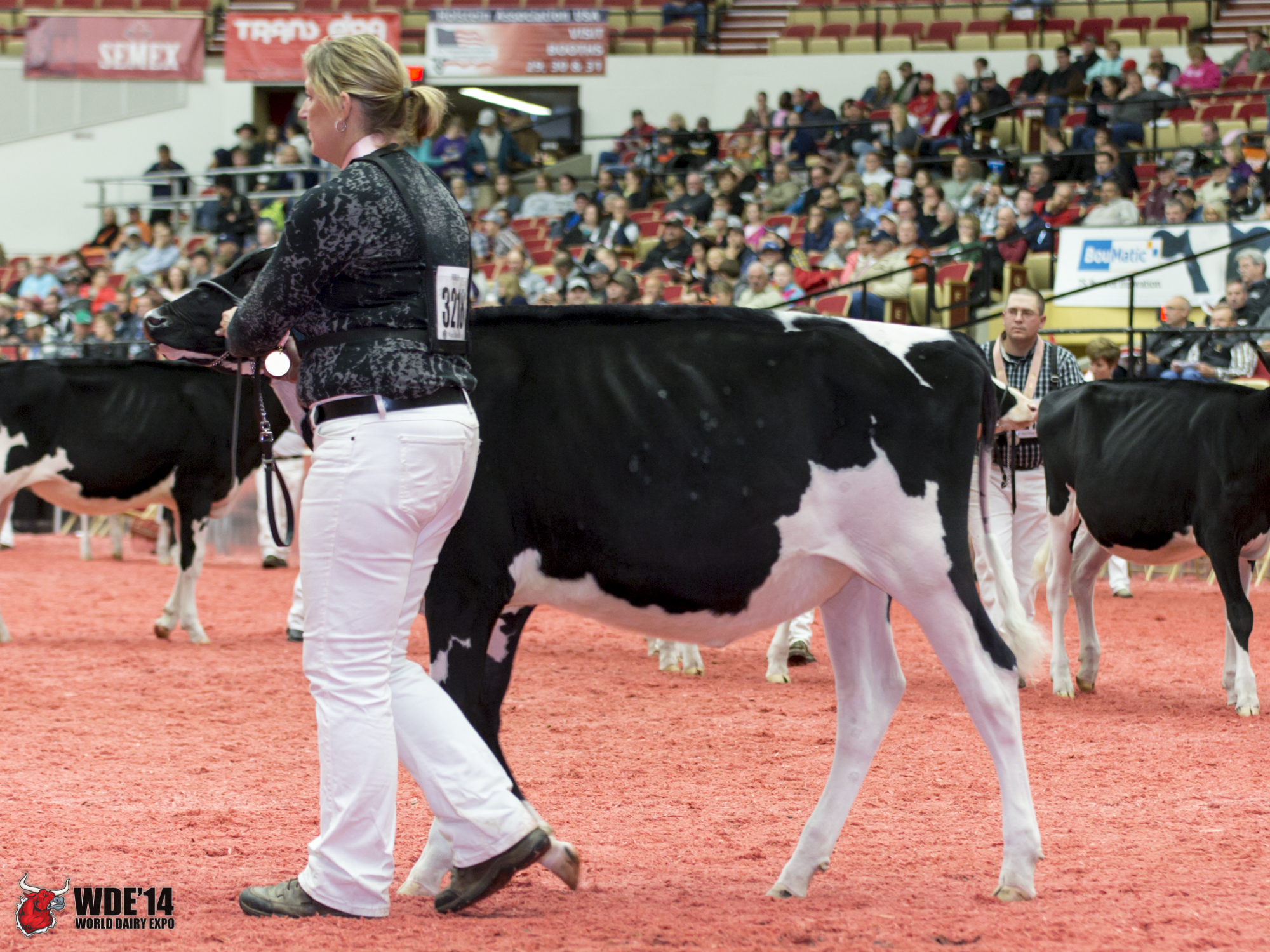 Junior Champion – Comestar Larion Goldwyn (Goldwyn), Jeffery Jet Butler & Lightening Ridge Holsteins, IL Reserve Junior Champion – Ashview-TG Atwood Lilly-ET (Atwood), Ted, Molly, & Tom Norling & Tony Galgowski, WI HM Junior Champion – Savage-Leigh Alex Lacey ET (Alexander), Miranda E Iager, MD