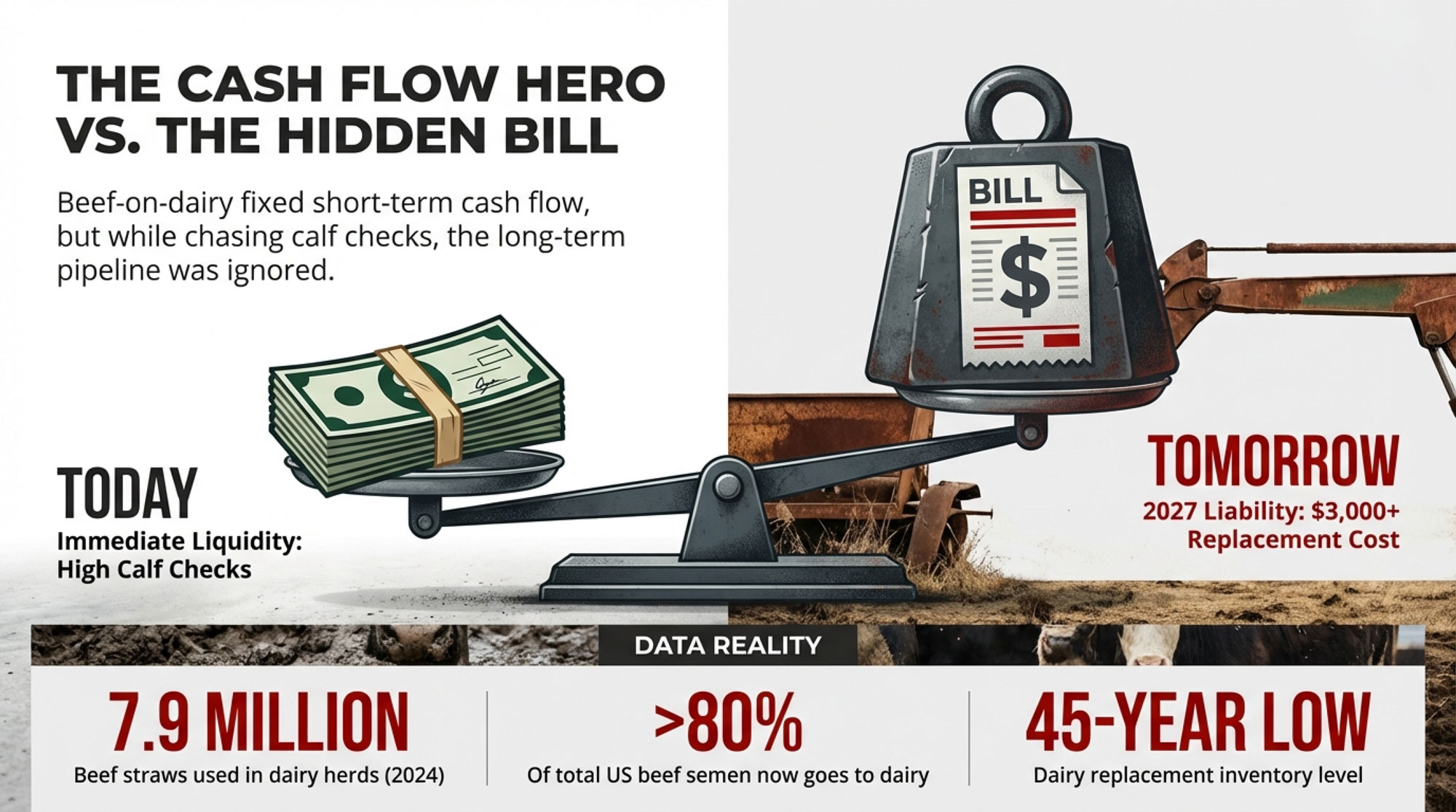| Diagnostic Criteria | ✅ Sustainable Beef-on-Dairy | 🔴 Scheduled Crisis (Hidden Bill Coming) |