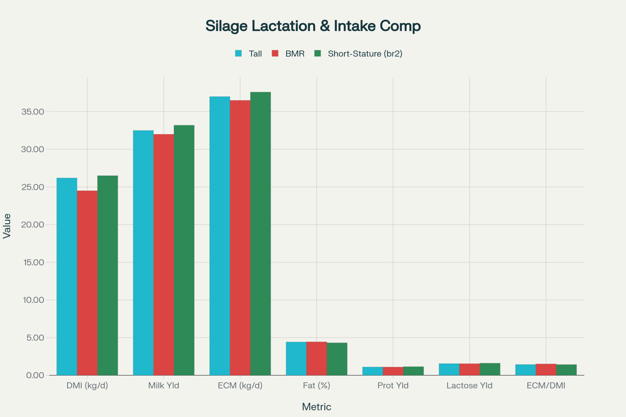 Key Finding: br2 corn drove 8% higher daily feed intake than BMR, translating to significantly more milk production and component yields.