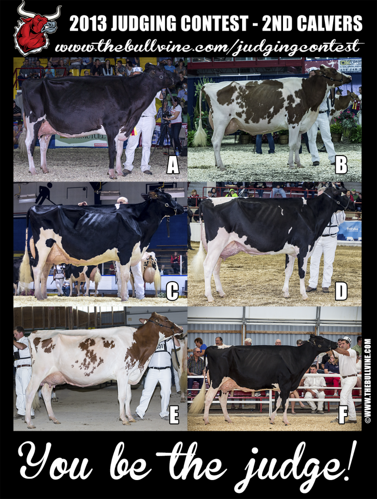 Positive close: “I admire the dairy character of two and recognize her length, but today one carries the advantage in udder attachments and locomotion.”