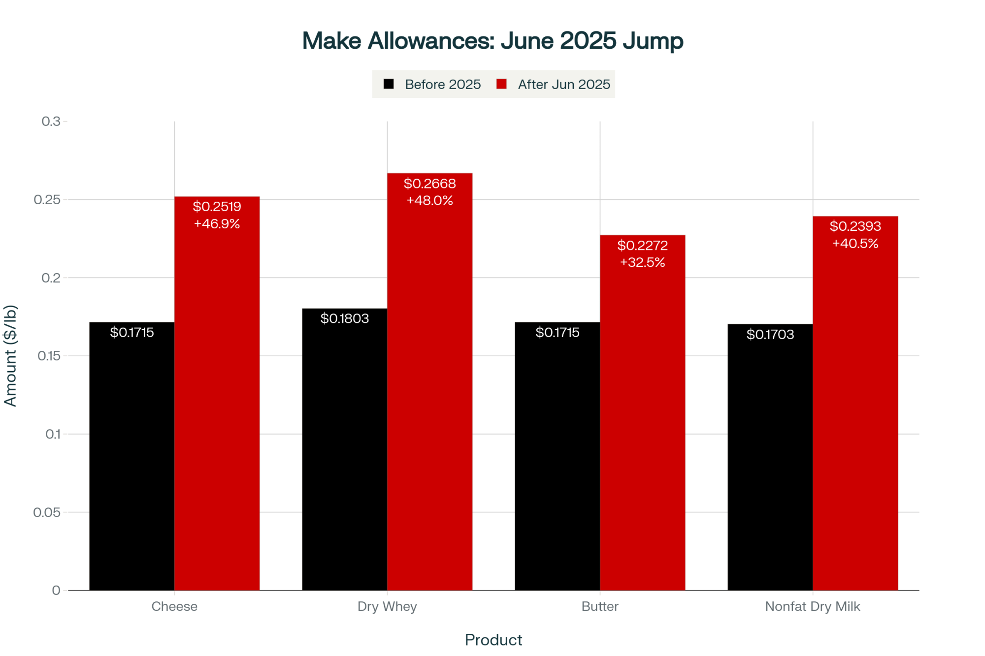 Here’s what set this off. In June, USDA raised make allowances—the assumed cost of processing milk into dairy products—by 25 to 43 percent. The reasoning was simple enough: labor, packaging, and energy costs have risen since the last review in 2008.