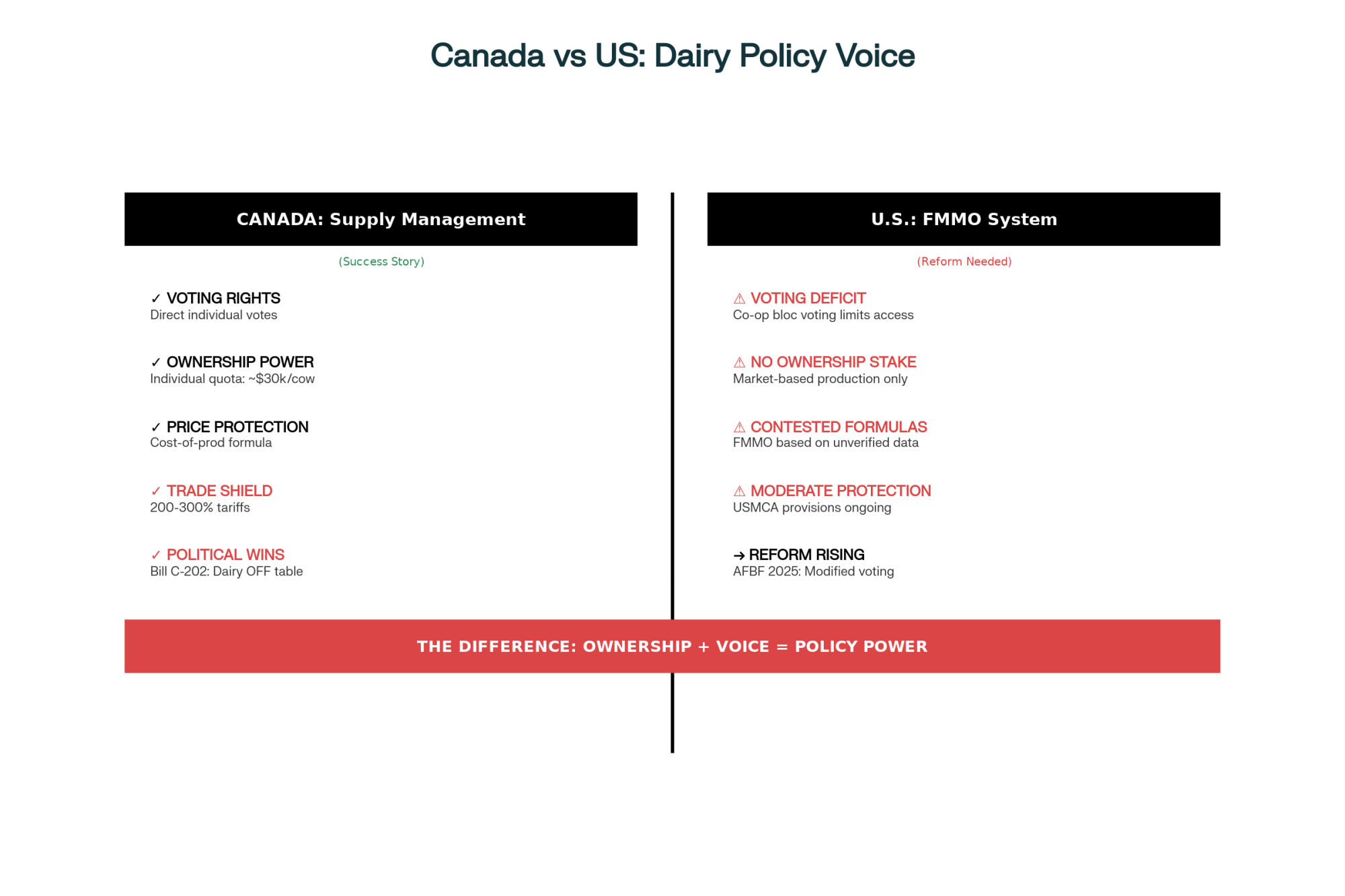 The U.S. doesn’t have a quota system, and few producers would want one. But here’s the takeaway: when farmers hold direct, non-negotiable voting authority, policy outcomes tend to protect producers instead of eroding them.