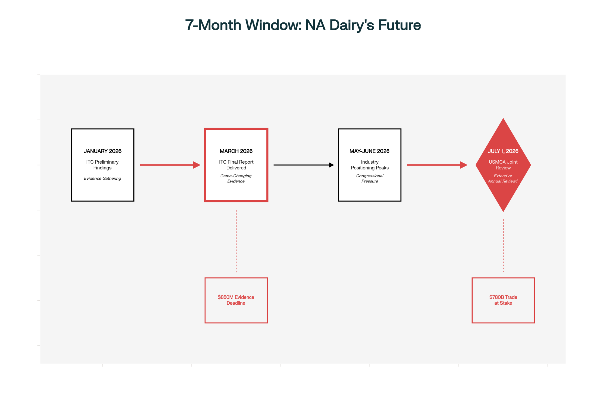 The timing of the ITC investigation is no accident. The International Trade Commission investigation into Canadian dairy protein dumping delivers findings in March 2026. That’s just four months before the review—giving U.S. negotiators the federal agency documentation they need right when they need it.