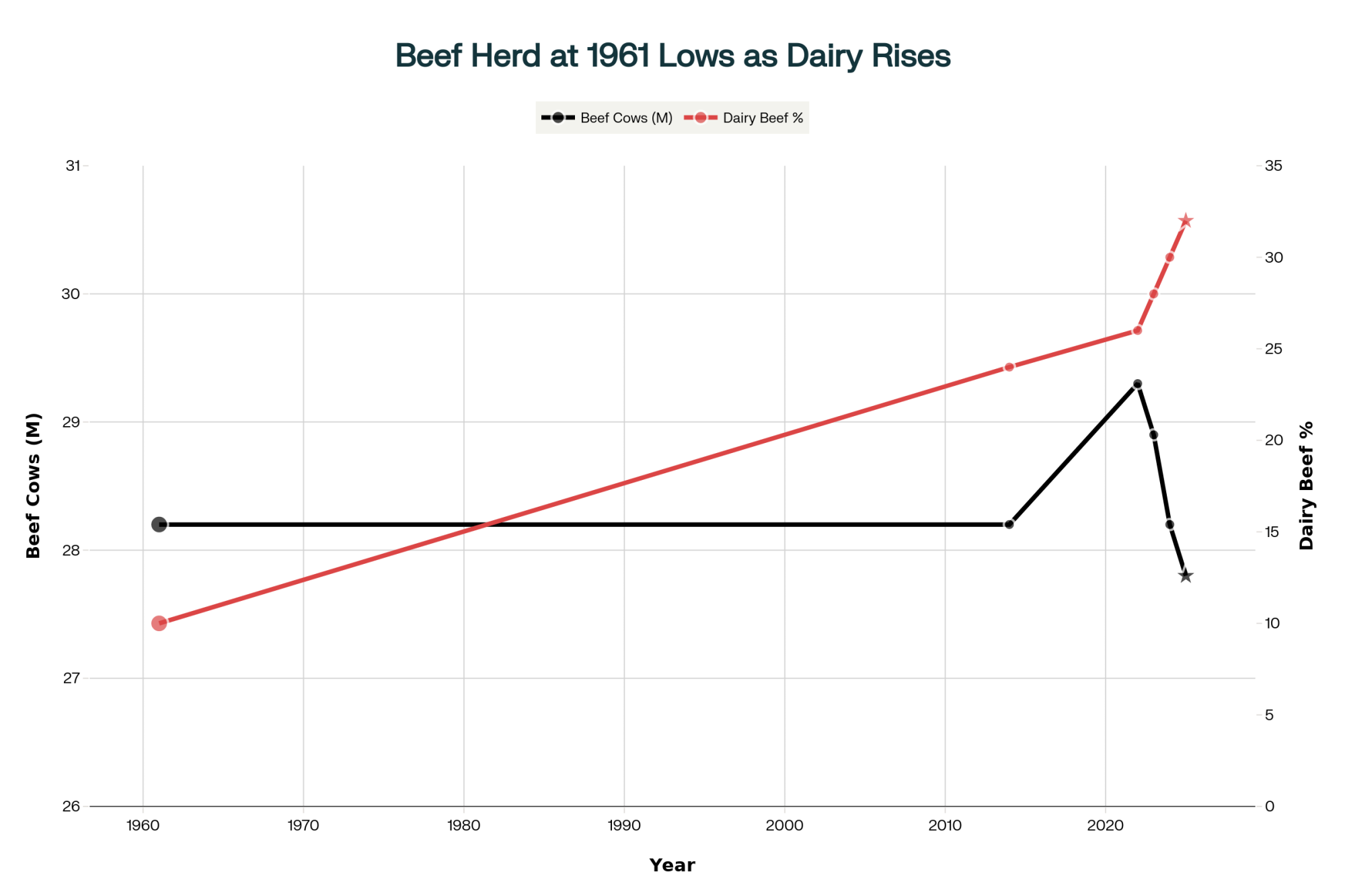 USDA’s January 2025 Cattle inventory report shows dairy heifer numbers at historically low levels—we haven’t seen this level since the late ’70s. All those years of breeding for beef-on-dairy when milk prices were tough? Well, now we’re seeing the consequences—or maybe the opportunities.