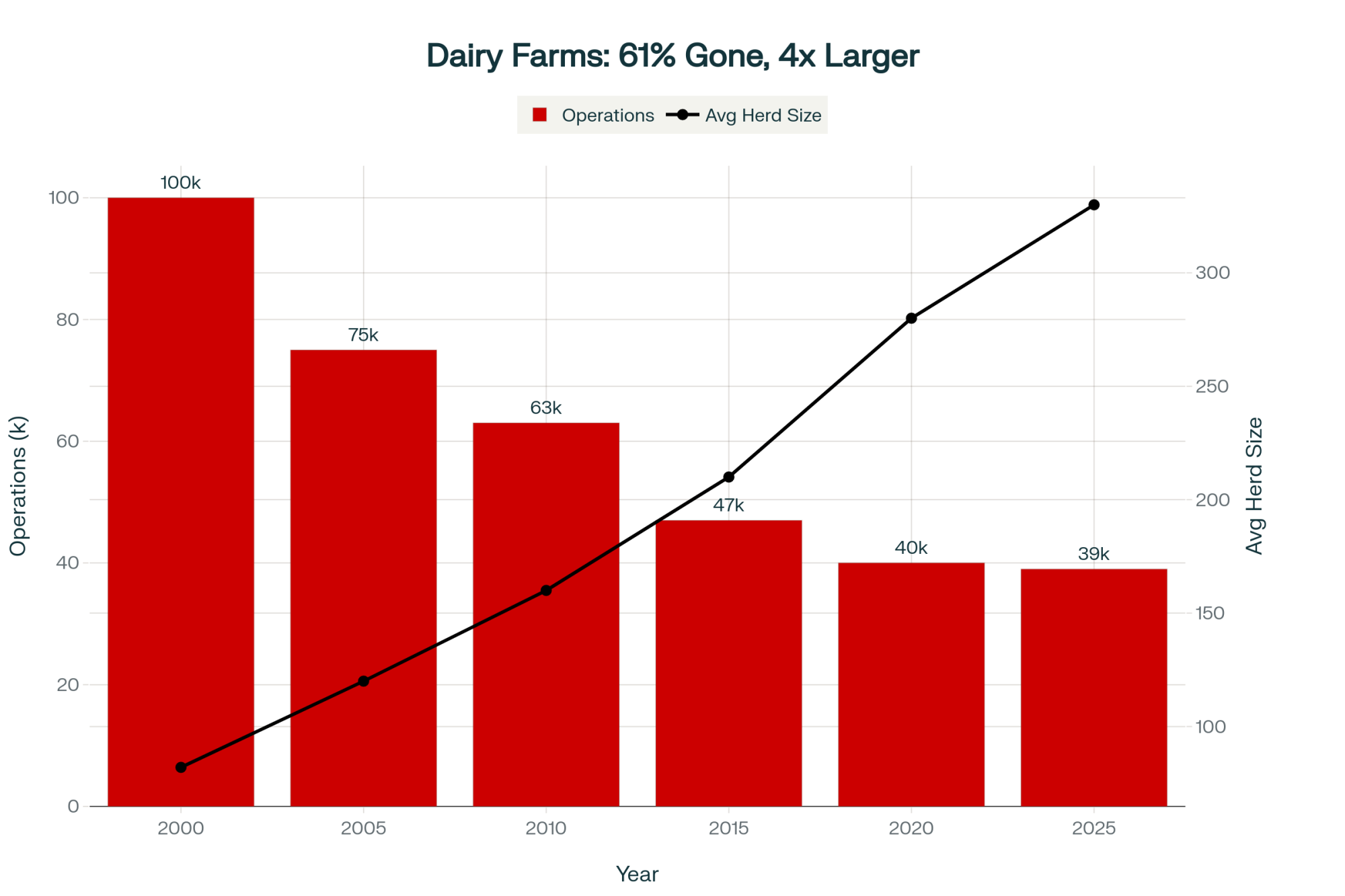 Let’s be honest about what’s happening here. Consolidation isn’t some future possibility—it’s here, right now. USDA’s 2022 Census of Agriculture shows dairy farm numbers in the mid-30,000s, and USDA Economic Research Service economists expect that to continue declining as the industry consolidates.