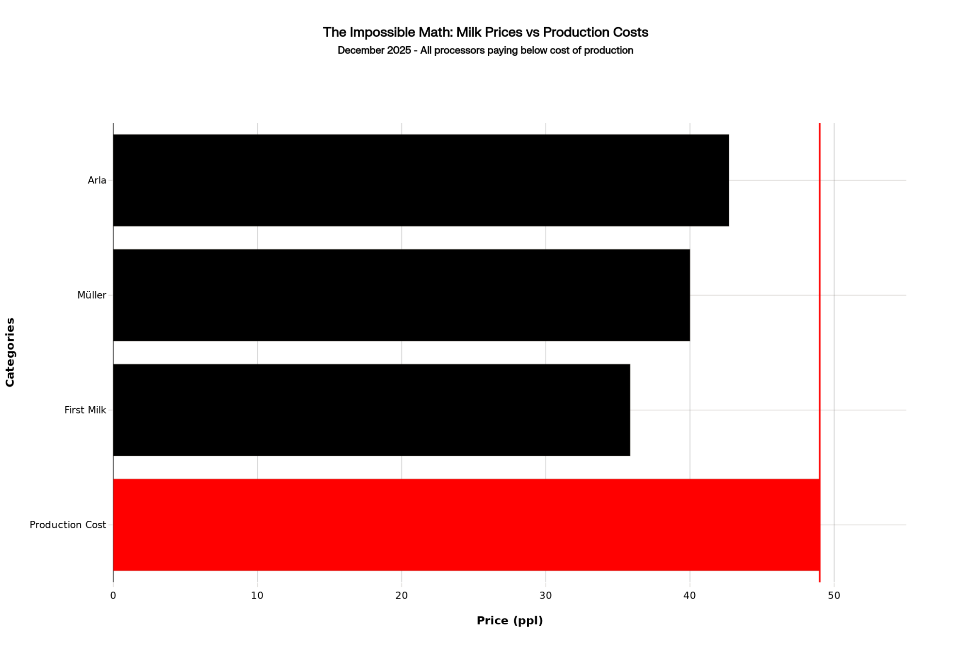 - The cost gap is unbridgeable: Mega-dairies operate at $13.80/cwt, small organic farms capture $45-48/cwt, but mid-size operations bleed cash at $18-21/cwt with no fix