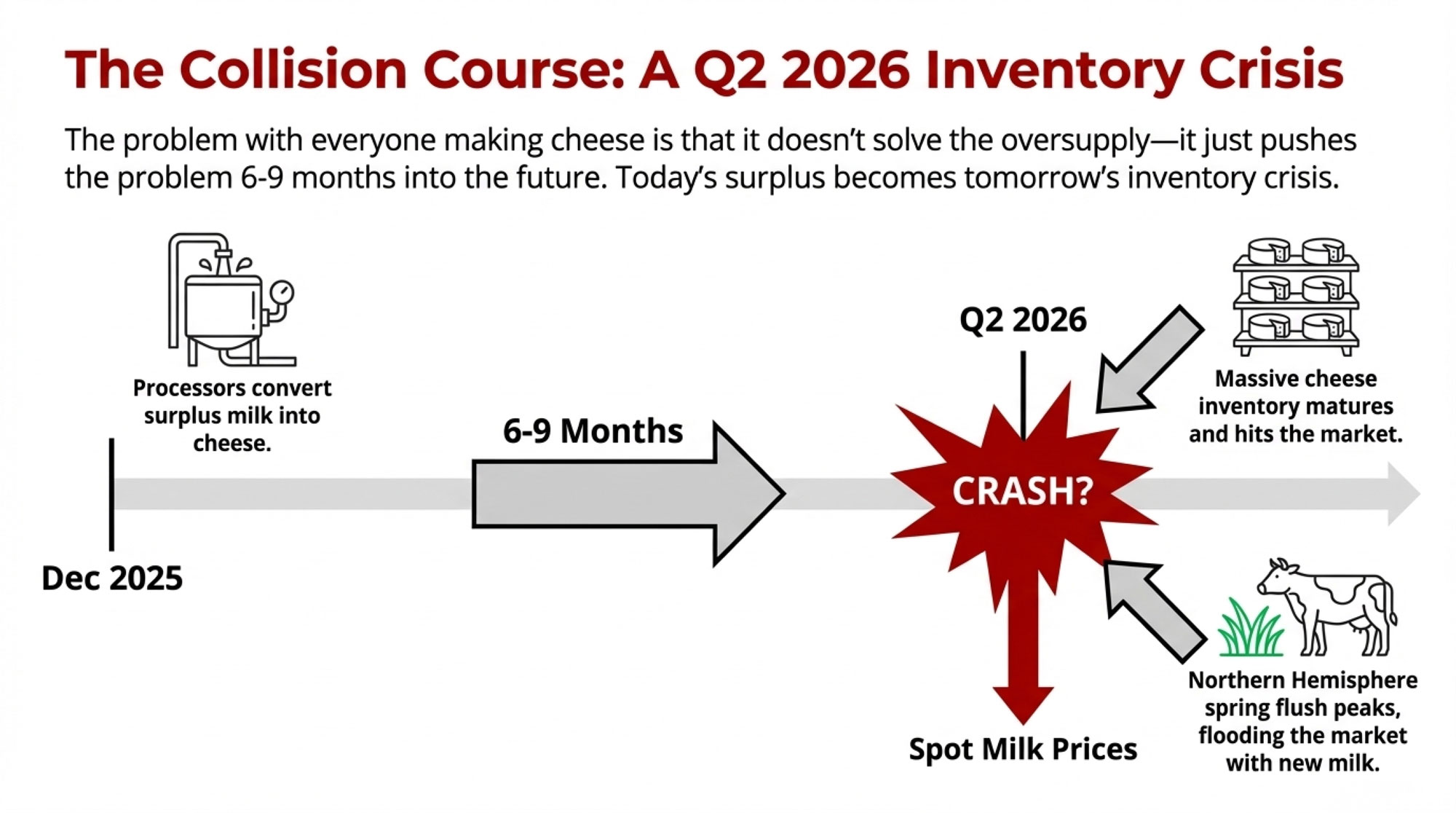 - Q2 2026 Inventory Collision: Processors globally are shifting from butter to cheese simultaneously. This inventory matures in spring 2026, precisely when the flush hits—creating a potential crisis for spot milk prices.
