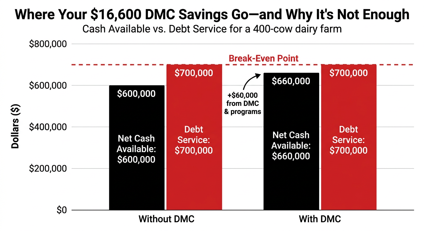 Your 400‑cow herd can “win” $16,600 on DMC in 2026 and still sit at 0.9x DSCR the minute your banker deletes those dollars from the cash‑flow.