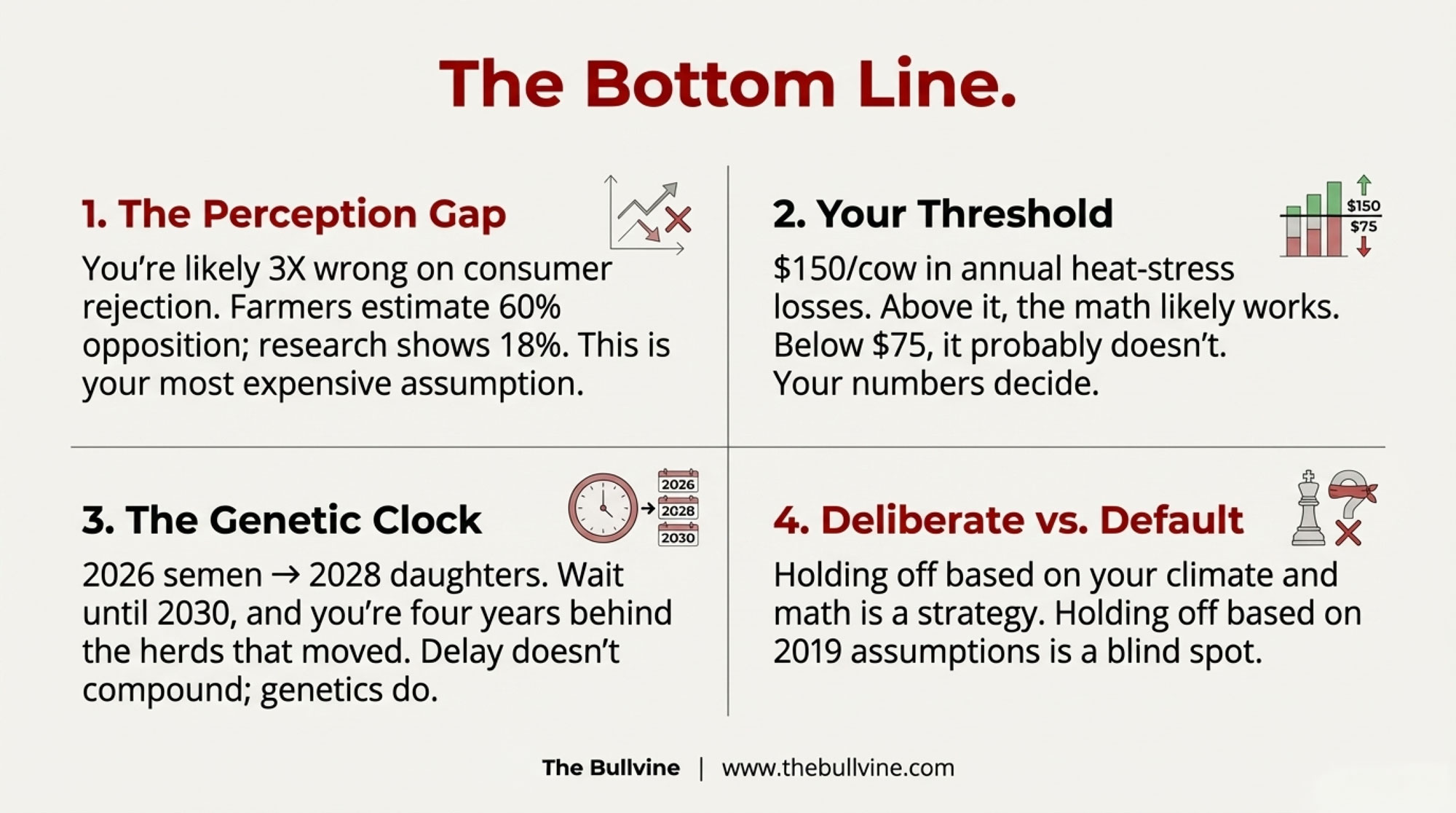 Even with today’s elevated cull values narrowing the replacement cost gap, the fundamental point remains: cows that would have been clear culling candidates when heifers cost $1,800 now have positive retention value at $3,500 heifers. The economic decision point has shifted. The question is whether our decision frameworks have shifted along with it.