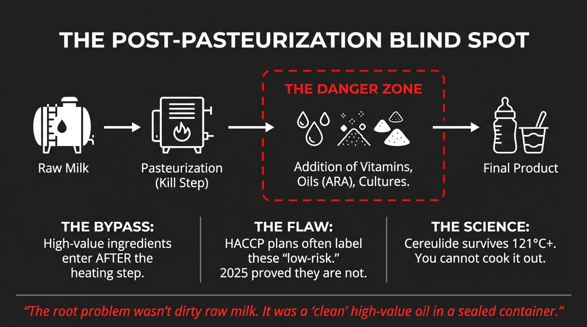 Translation: if a Fairlife bottle tests clean for safety, nobody is required to know whose cows produced it. That’s a food safety system, not a brand integrity system.