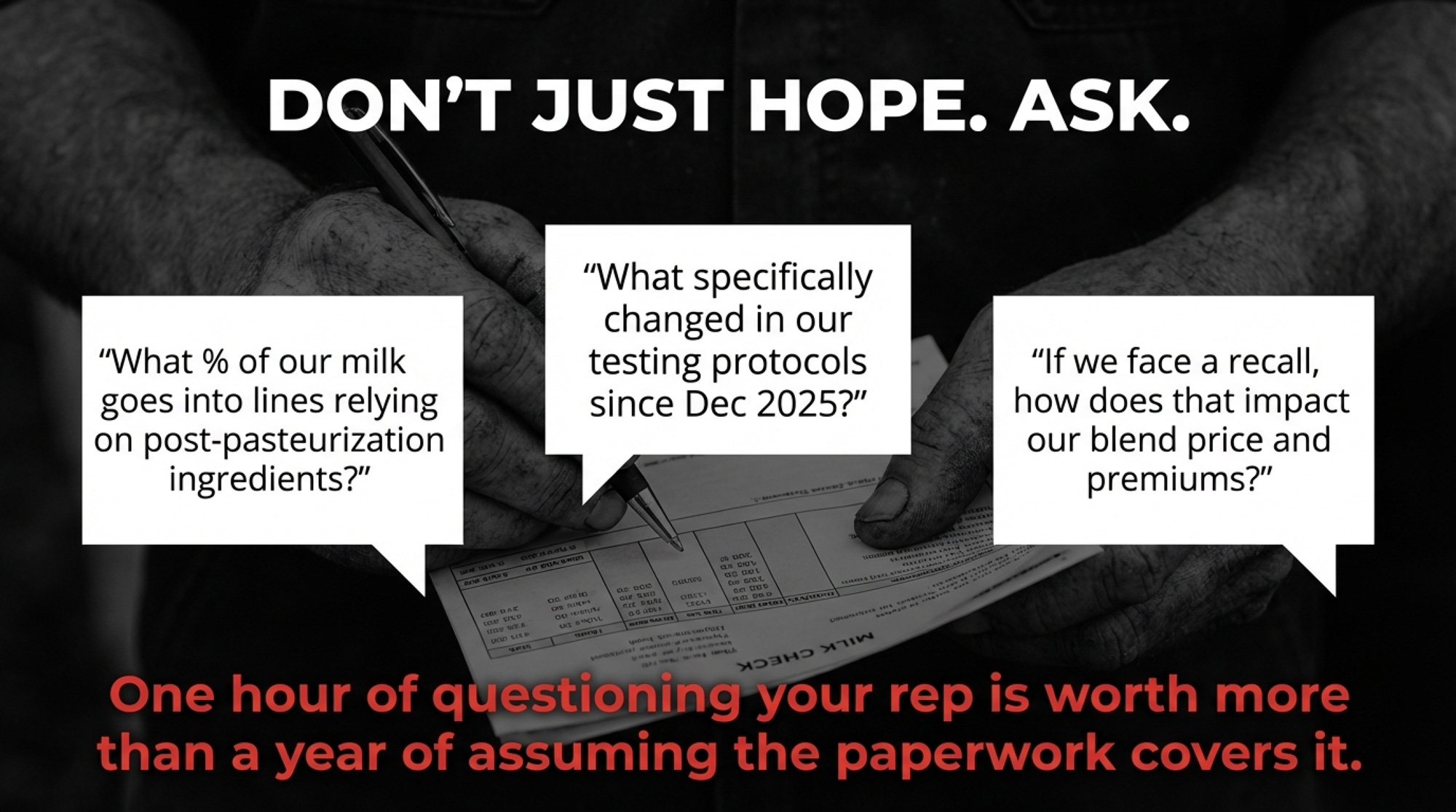 Within 90 days: Review your marketing agreement. Look for brand-contamination clauses — language that addresses what happens to your premiums if another member farm in your supply chain gets investigated. If that language doesn’t exist, you’re carrying risk you haven’t priced. Talk to your ag attorney.