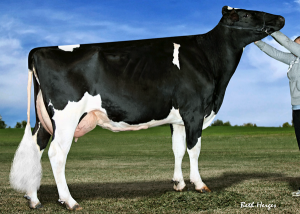 Another one to watch from the Dellia family will be COOKIECUTTER MOG HANKER and COOKIECUTTER SHMRK HAZE (Who was originally scheduled to sell in the International Intrigue sale). Sired by Mogul and Shamrock respectively these heifers are from COOKIECUTTER MOM HALO VG-87-2yr (Who also is set to sell at the 2012 Sale of Stars at the Royal), the dam of COOKIECUTTER PETRON HALOGEN the #1 GTPI bull in the breed (GTPI +2690). Just like Hue (Lot #9) these heifers have it all: production genomic test and type. As far as genomic tests go these heifers are toss-ups to choose between. You will have to go old school to figure it out. Use your eyes to determine which one has enough frame and rump structure to score VG as a 2yr old. (Note also selling in the World Classic sale is their Supersonic sister who has slightly lower genomic numbers).