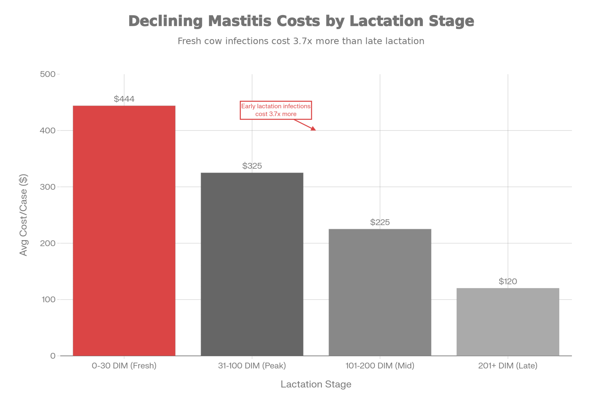 | Days in Milk Impact | All cases cost ~$250 | Early lactation: $444; Late lactation: ~$120 | Varies 3-4x based on timing |