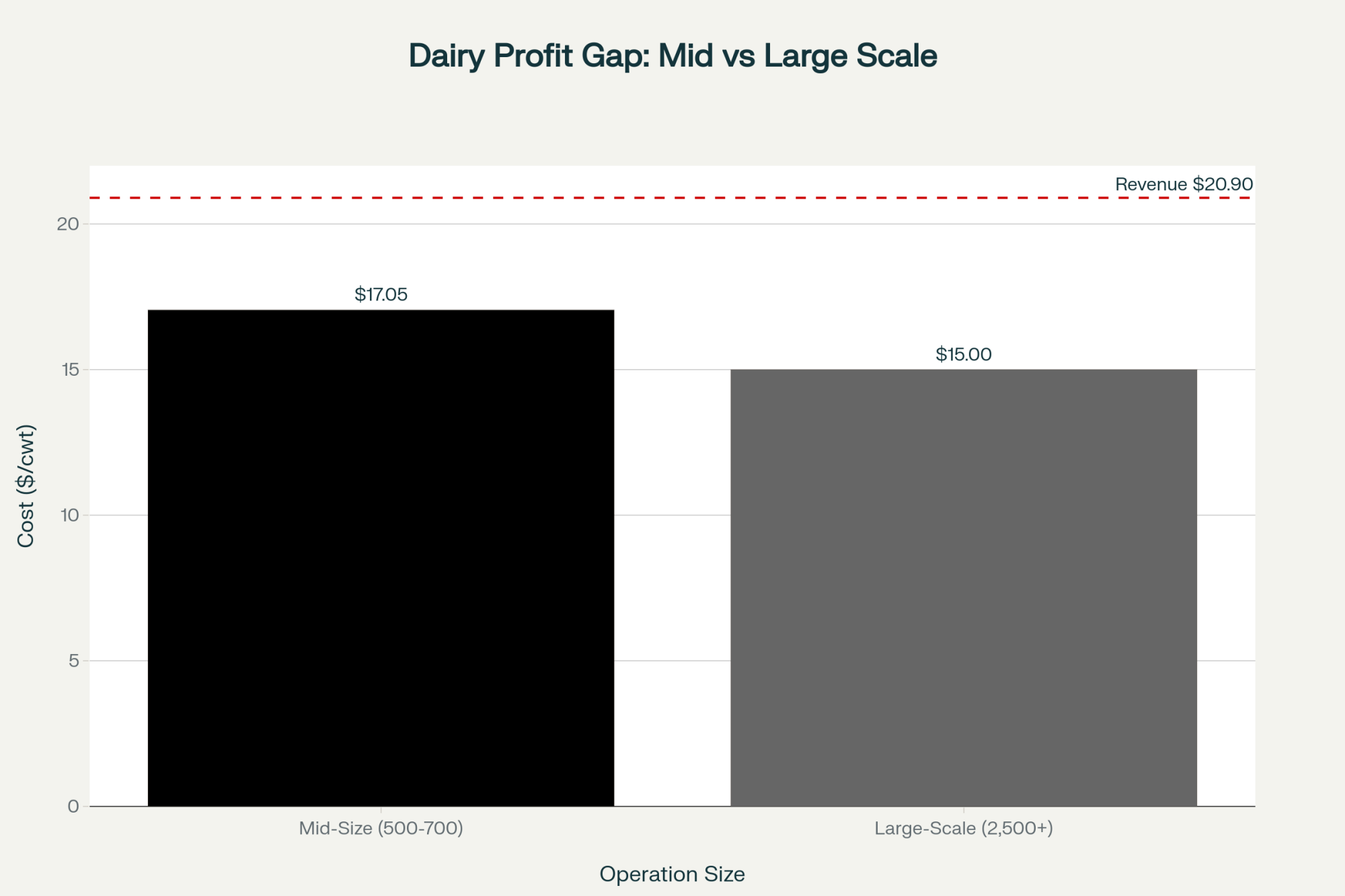 Elite execution: I know of operations in places like Skagit County, Washington, running under 200 cows at under $18/cwt with 50+ cows per worker. It’s exhausting, but it’s possible.