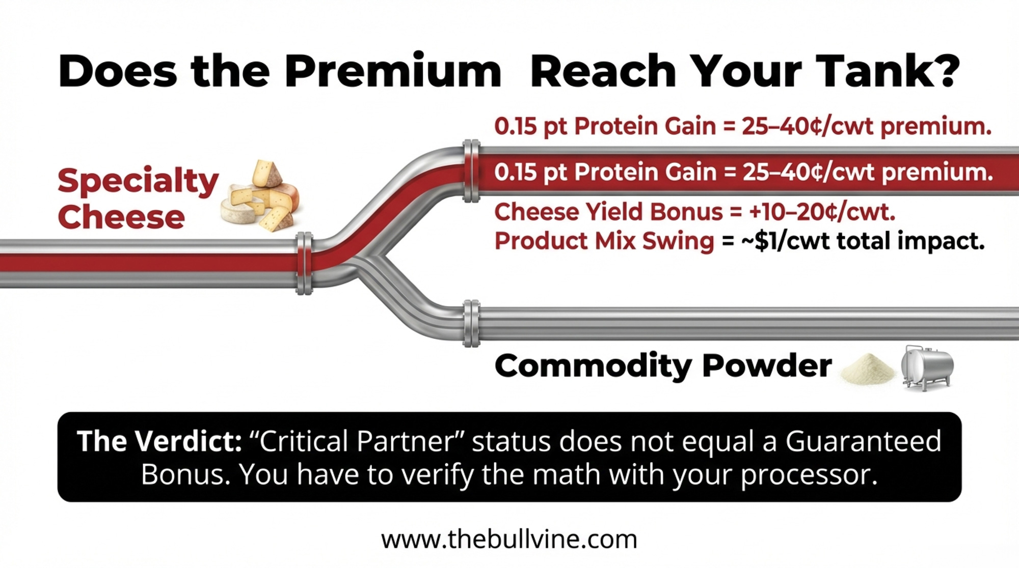 That’s the right direction. But “critical partners” and “a line item on your milk check” aren’t the same thing. If your milk ships to a plant with an artisan line and your components are strong, bring one question to your next field-rep visit: What butterfat and protein specs does your specialty cheese require, and does meeting them earn me a premium? If they can’t answer, the answer is probably no. And that’s worth knowing.