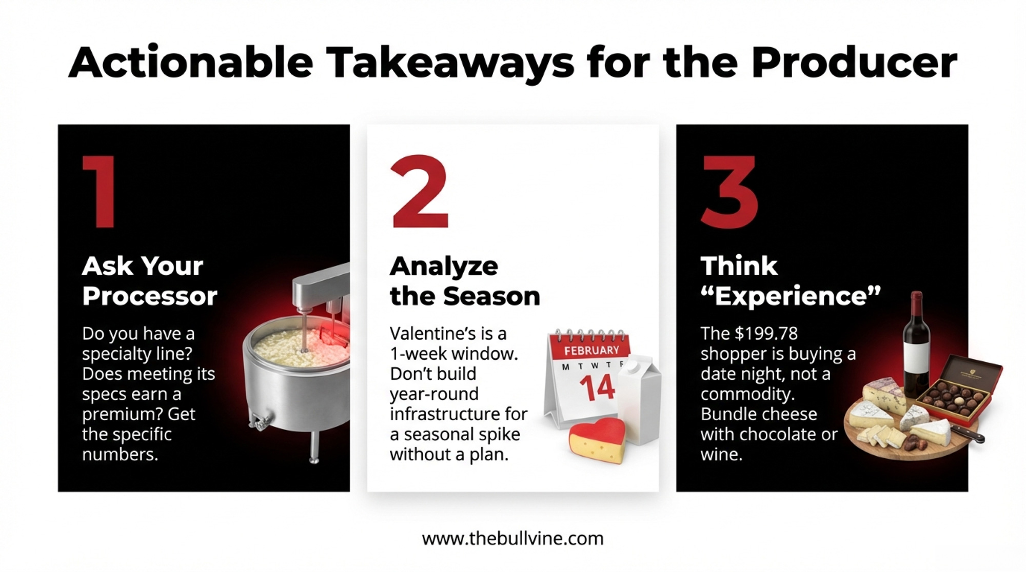 Be honest about the seasonal risk. Valentine’s is a one-week window. For farmstead operations, gearing production to that spike means holding inventory that may not move if demand disappoints. Coalition marketing avoids this — the cheese already exists; you’re just merchandising it differently.