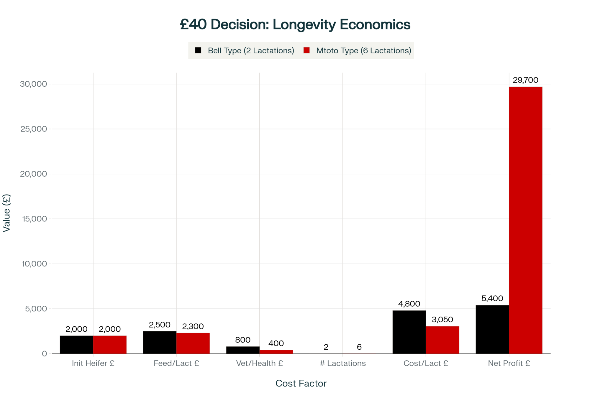 - Four times the price, ten times the return: Mtoto’s £40 “waste” became billions in value through daughters that lasted six lactations vs. 2