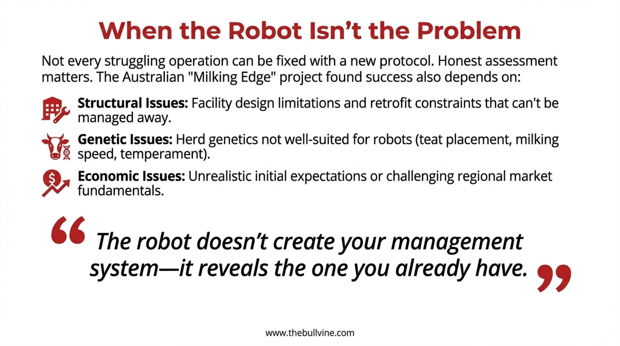 The Australian dairy industry’s Milking Edge project—a four-year initiative through NSW Department of Primary Industries—tracked commercial installations and found success depends heavily on factors beyond equipment: