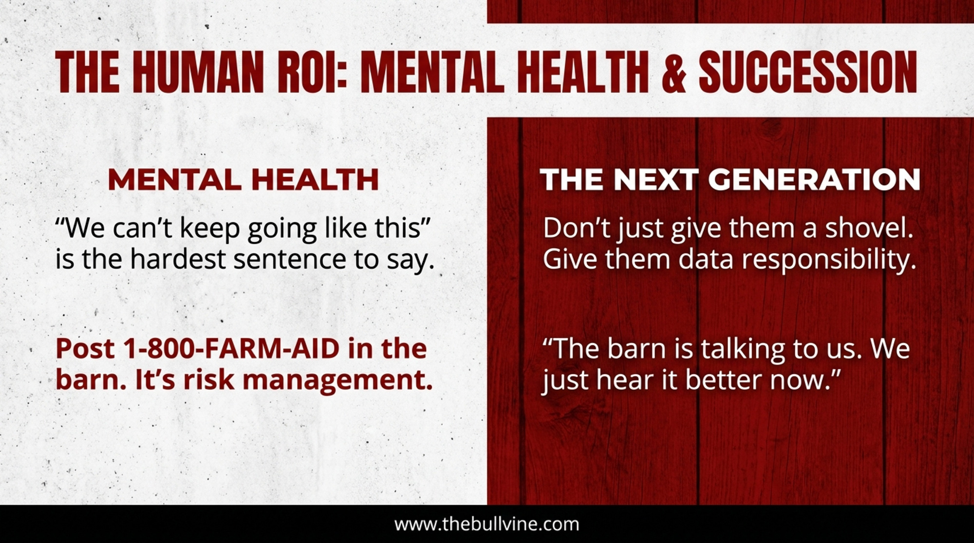 - Mental health isn’t soft. It’s a leading indicator of whether your family and business will still be here when the next price cycle turns.