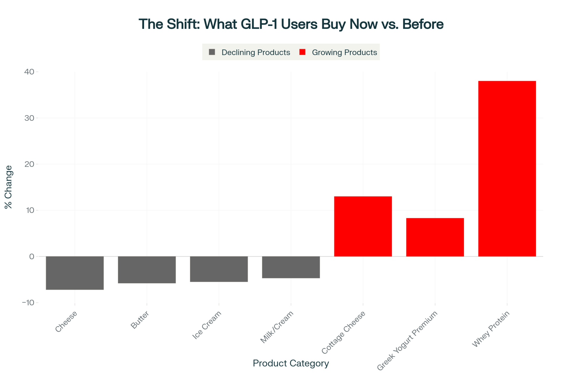 4.2 million on GLP-1 drugs just shifted dairy demand. Yogurt up 3x. Cheese down 7%. Your protein premiums won’t last past 2027.