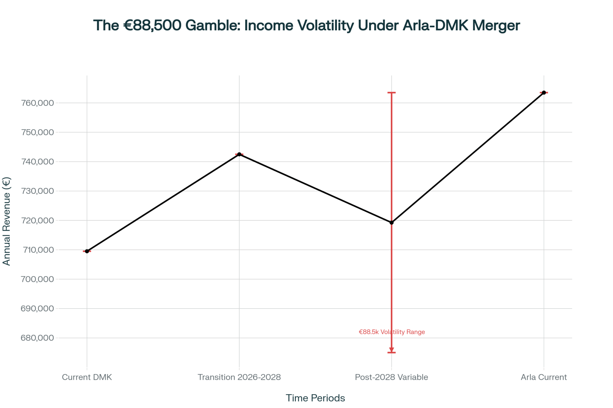 - Financial Impact: DMK farmers face €88,500 annual income volatility post-2028 (€675,000-€763,500 range), requiring 9-12 months operating reserves versus traditional 3-4 months—that’s €177,000-€236,000 in cash cushioning for typical 1.5 million kg operations