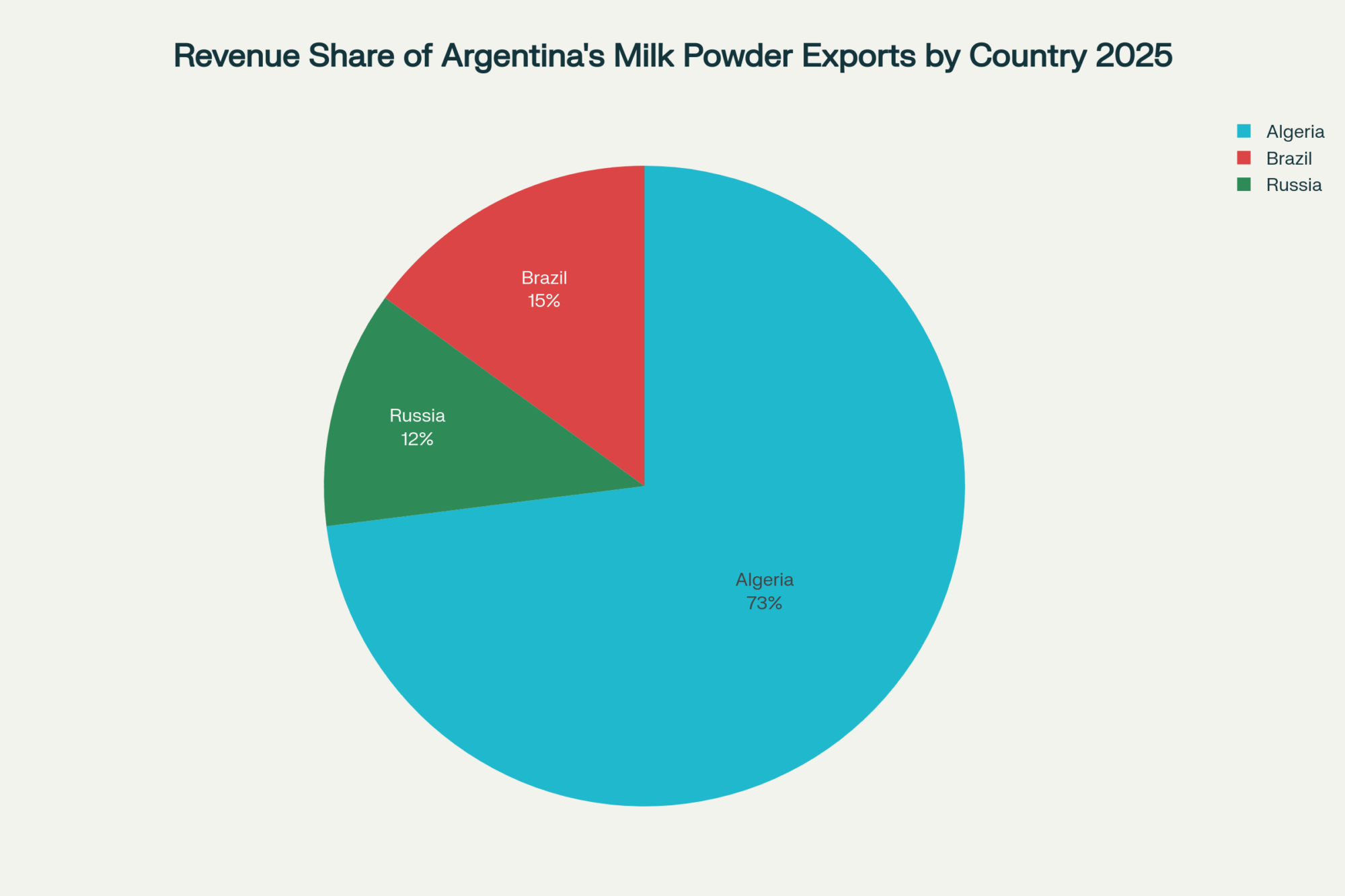 Algeria absorbs about 73% of Argentina’s whole milk powder exports, with Brazil and Russia also major markets