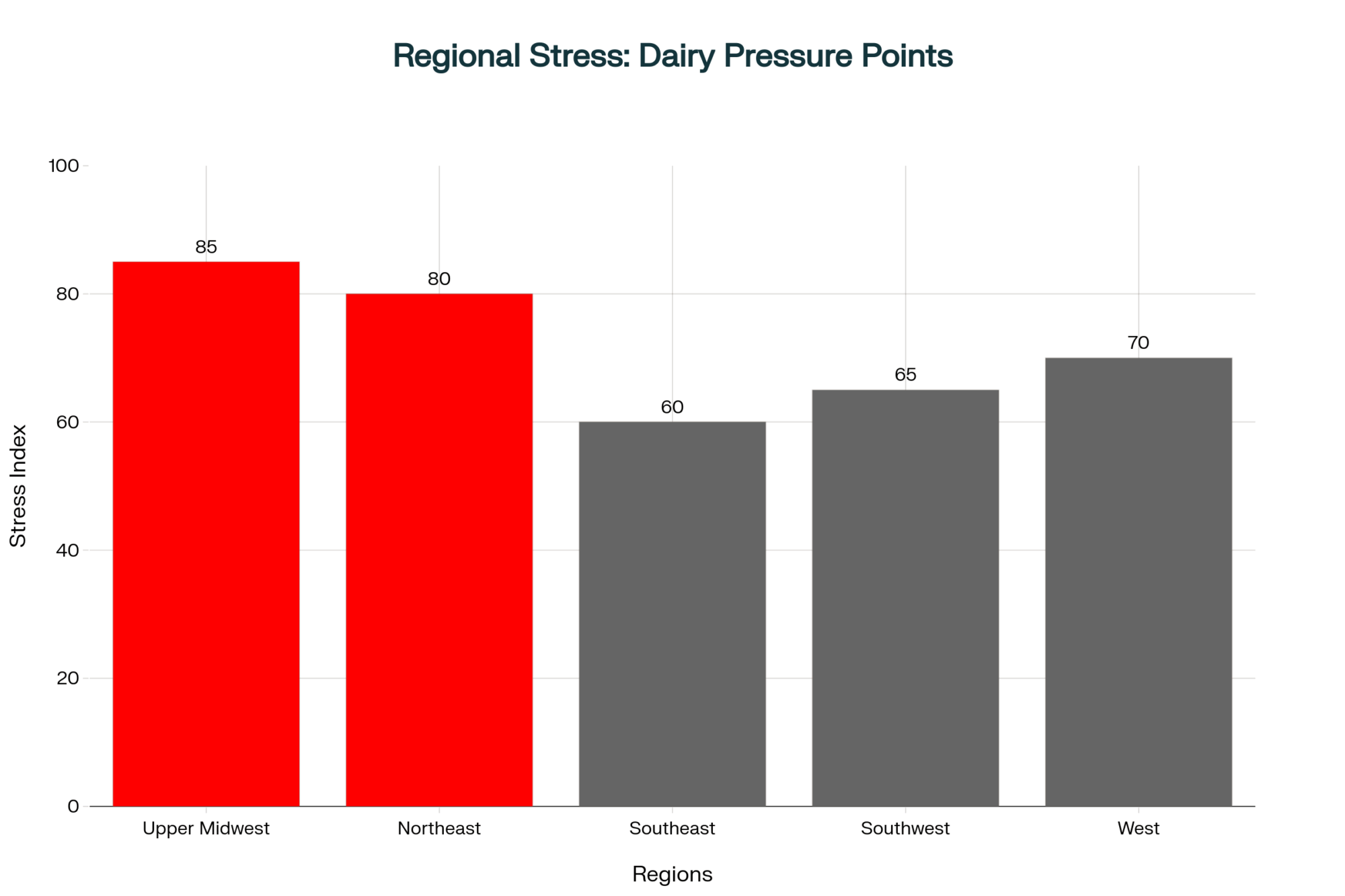 | Class IV Milk Price | $19.16/cwt | $16.17/cwt | -15.6% | 🔴 High |
