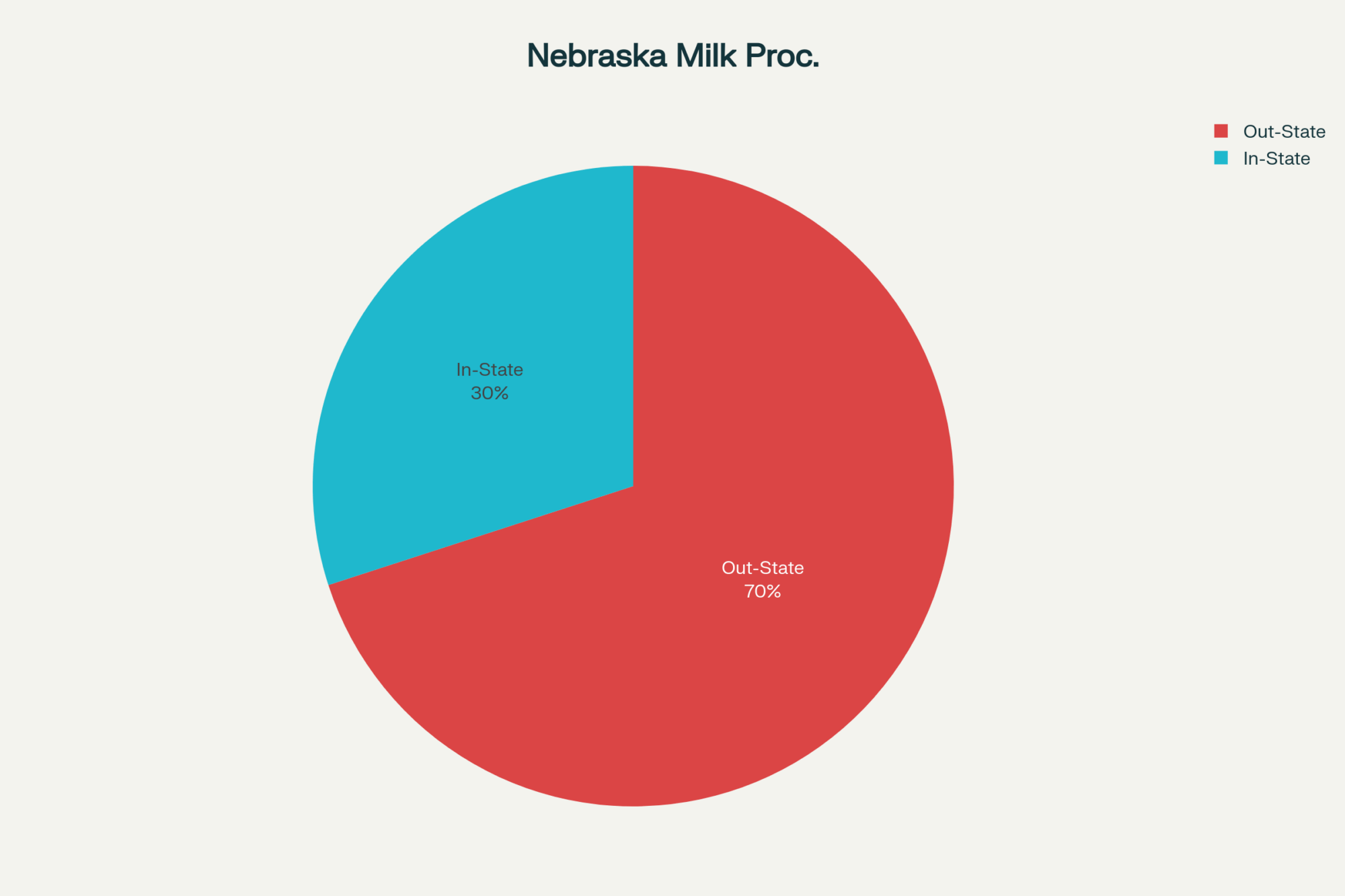Here’s the kicker that every producer needs to understand: Nebraska currently ships about 70% of its milk out of state for processing. While exact transportation costs vary by route and season, every mile milk travels represents a direct hit to producer margins.