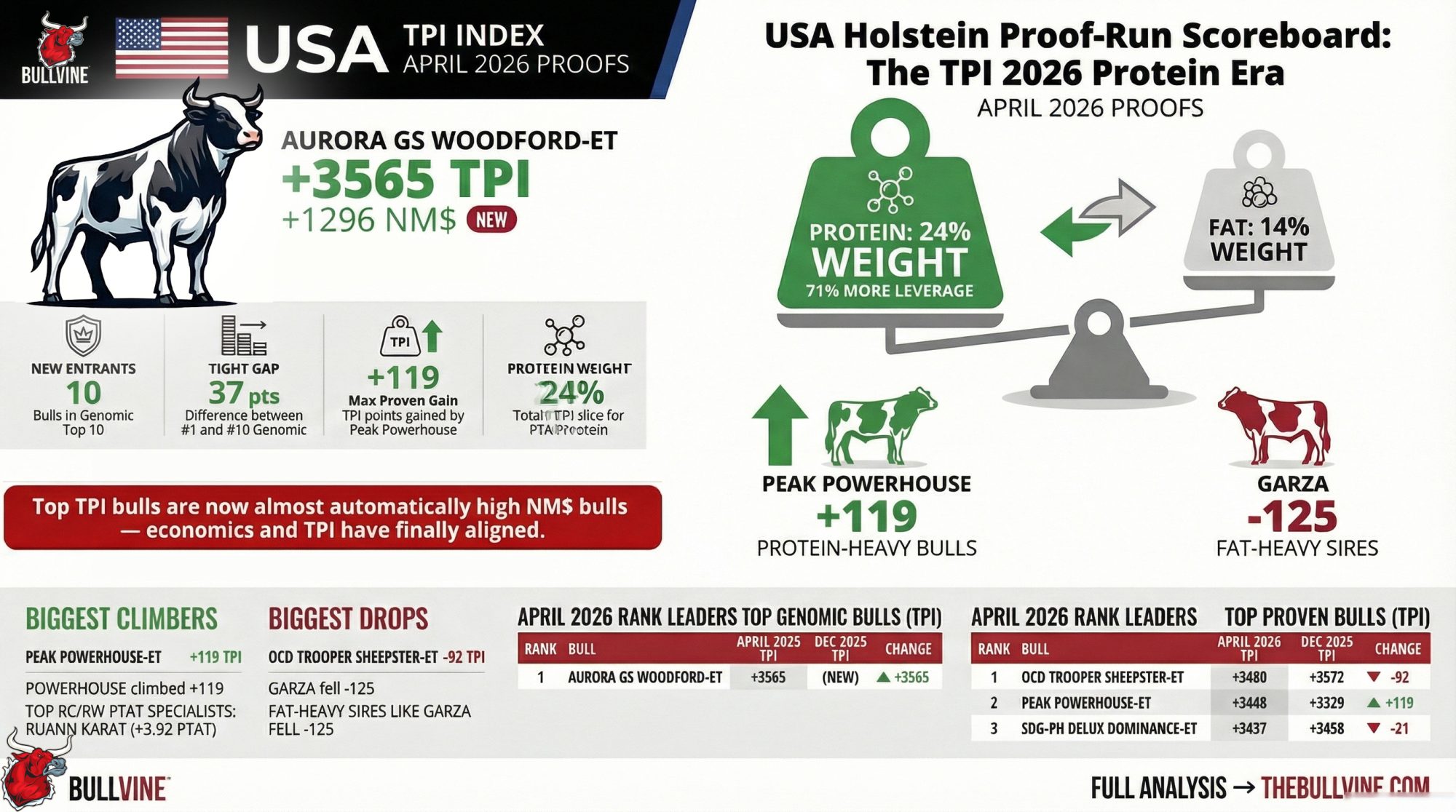 Read more: April 2026 USA Holstein TPI: Woodford +3565, Powerhouse +119 – Who Won and Lost the Protein Flip?