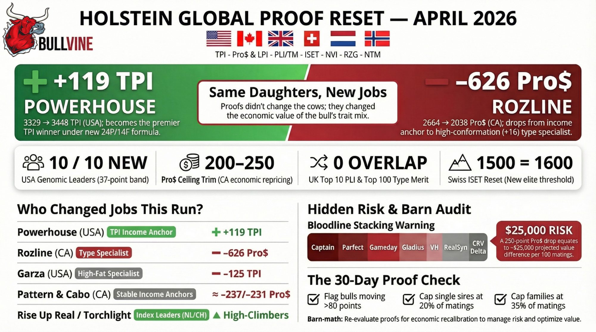 Powerhouse Up 119, Rozline Down 626: The April 2026 Holstein Proof Reset on Your Sire List